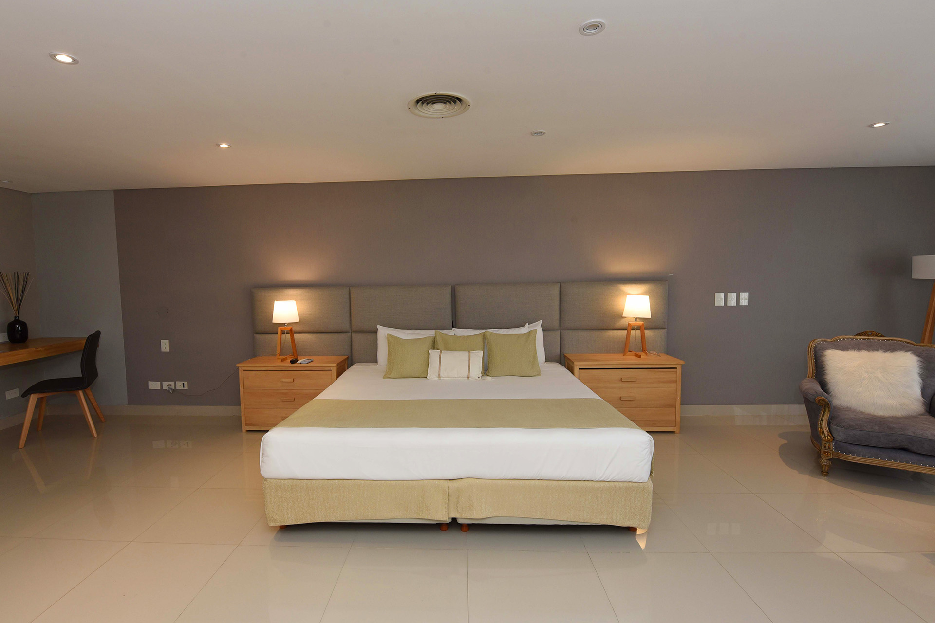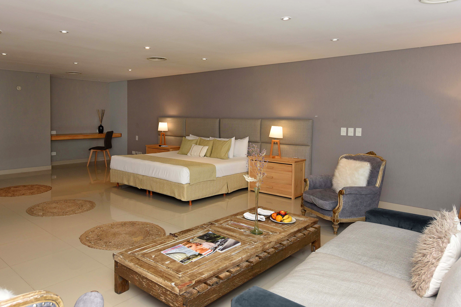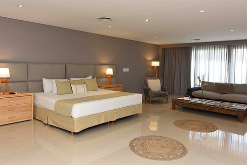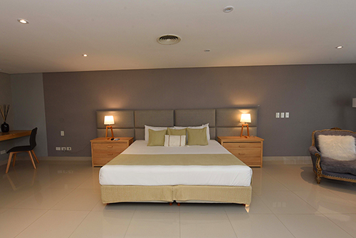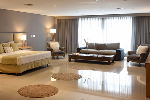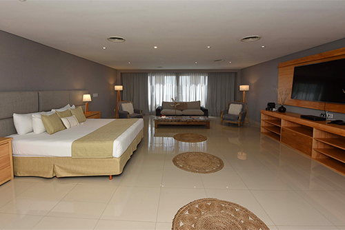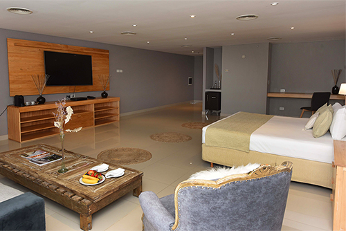 Disfrute de una espaciosa y exclusiva suite de 80 m², decoración minimalista, cama King size y baño con doble bacha y doble ducha. Cuenta además con amplio y relajante living, TV Smart de 55 pulgadas, conexión inalámbrica a Internet, cómodo escritorio de trabajo y cafetera de cortesía.