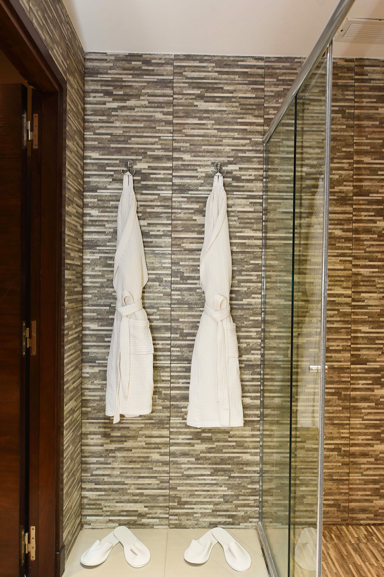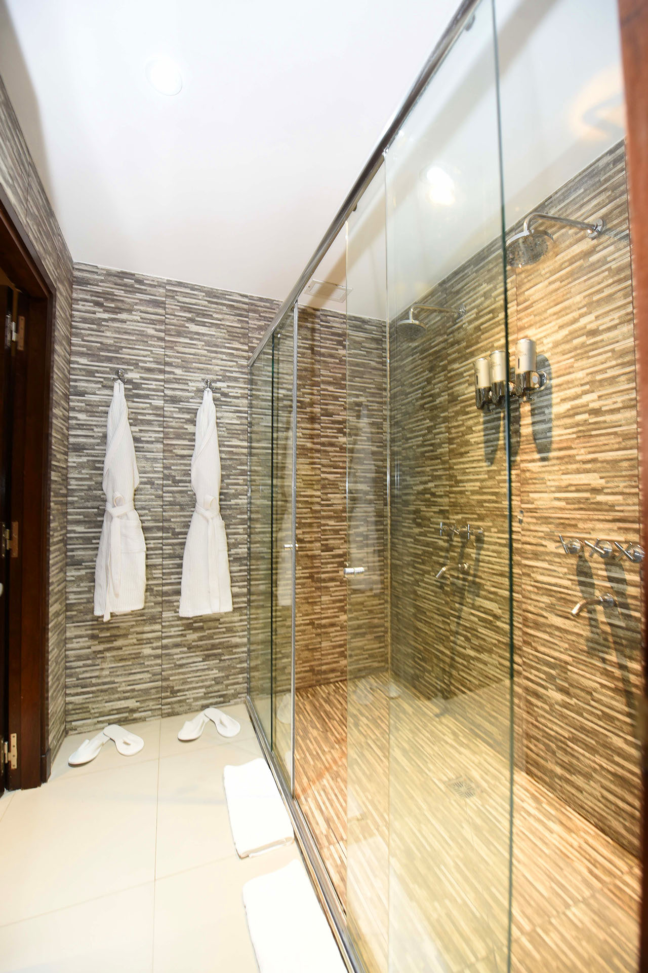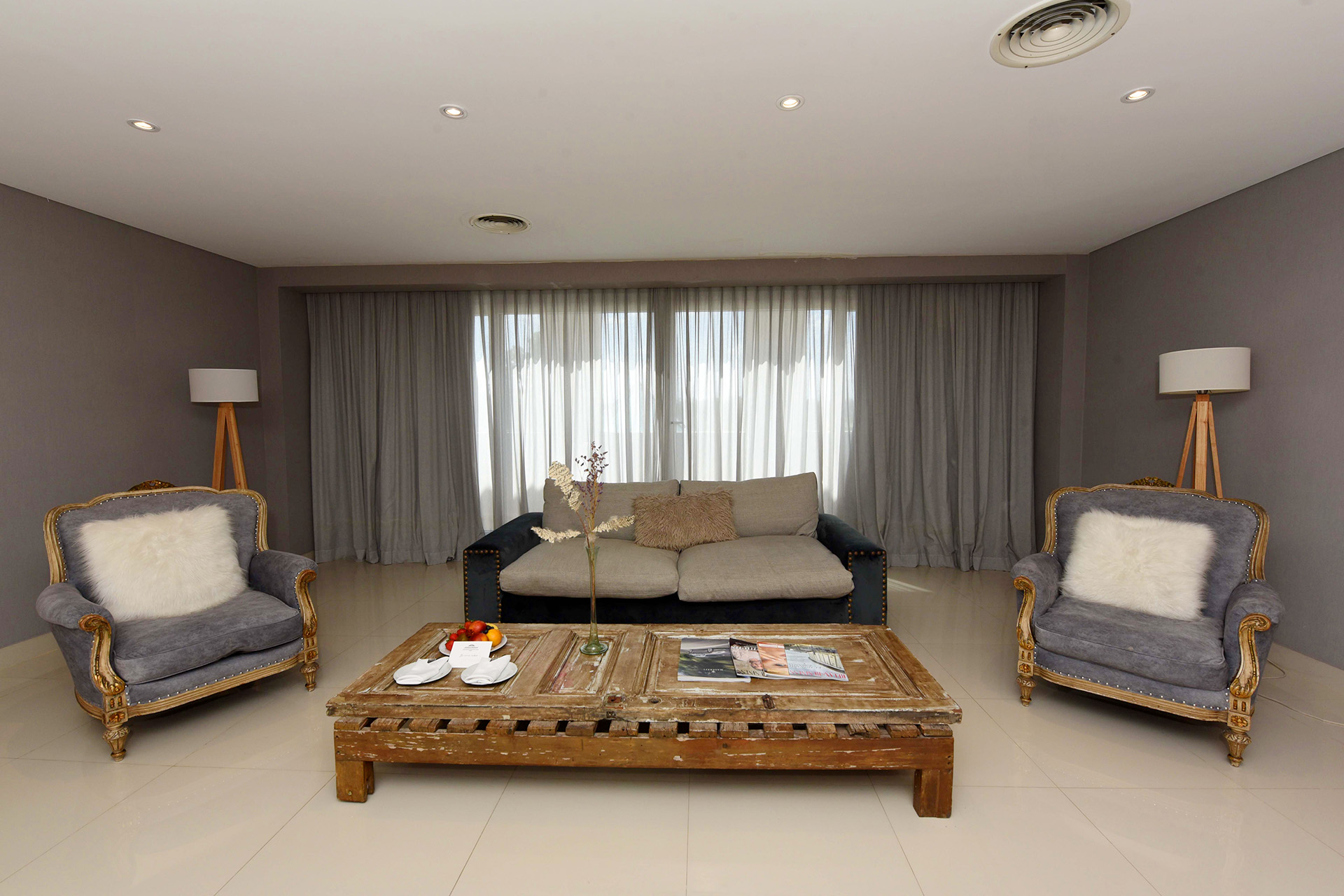 Disfrute de una espaciosa y exclusiva suite de 80 m², decoración minimalista, cama King size y baño con doble bacha y doble ducha. Cuenta además con amplio y relajante living, TV Smart de 55 pulgadas, conexión inalámbrica a Internet, cómodo escritorio de trabajo y cafetera de cortesía.